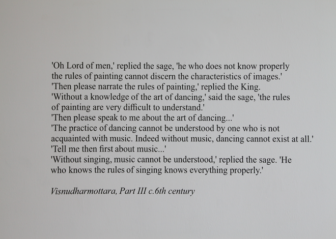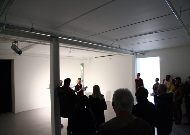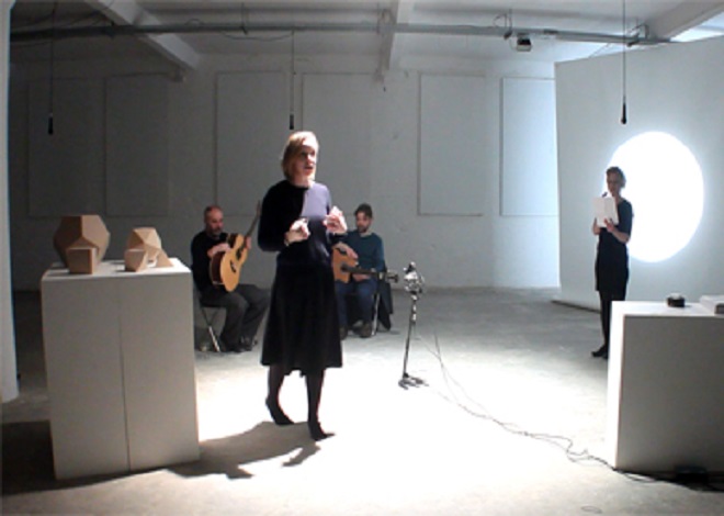 The new writing was performed as a short talk and guide to the exhibition. It was structured in three chapters; the first a personal account of an epiphany; the second, a conspiracy theory by the writer Jorge Luis Borges exploring a mysterious symmetry of thought across time and space. The third chapter is a timeline beginning in 1300 with Dante Alighieri, echoing 300 years later, with Galileo and the connection between the mechanics of the universe and opera. In another 300 years, Einstein refers us back to Dante and his vision of the cosmos. Half a century later in the 1970s Ingvar Lidholm composes his choral piece, which we stage here in the early 21st century.