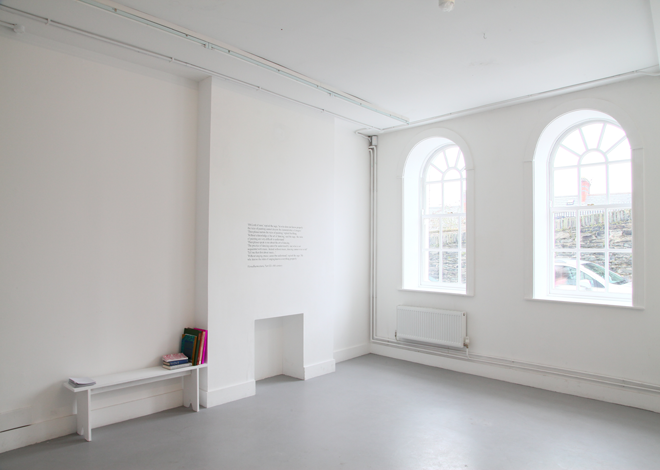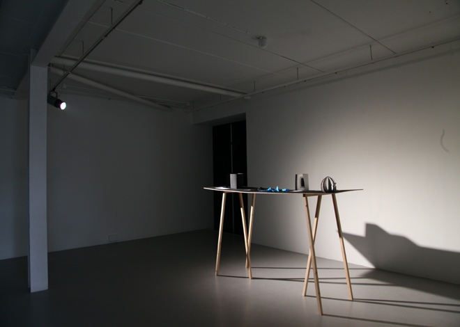 The relation between the sculptural objects, the narratives, the light, the volume of the gallery space, and the theoretical space of the broadcast, have been considered less in a curatorial manner, and more as a set of elements in a system following their own orbits.