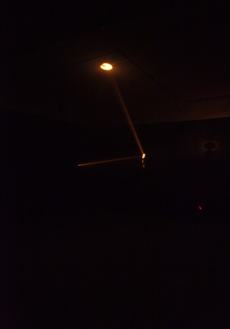 A riveder le stelle, 2017: Light, mirror, carbon sand, recording of ''a riveder le stelle'' (acapella choral work for mixed voices by Ingvar Lidholm, performed by Eric Ericson Chamber Choir, 1973)